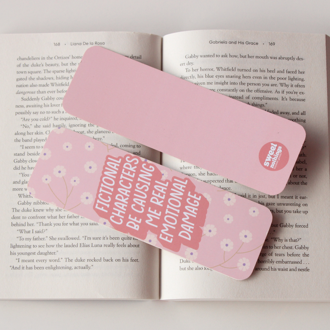 Each bookmark is printed on 18 pt premium paper with a sleek gloss finish, making it both durable and beautiful. Sized at 2.25" x 7", these bookmarks are perfect for slipping between the pages of your favorite romance reads. Featuring rounded corners for a smooth, elegant touch, they’re designed to withstand countless re-reads.