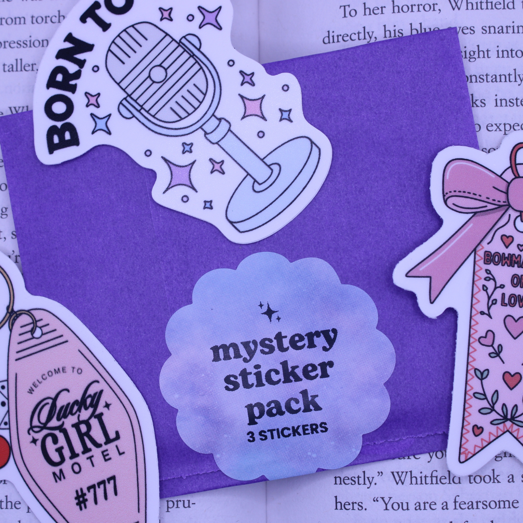 Our Mystery Sticker Pack includes three randomly selected 2.5" stickers, perfect for adding a little personality to your water bottles, kindle cases, laptops, notebooks, or wherever you love to stick them. Each sticker is crafted with high-quality materials to ensure vibrant colors, crisp details, and long-lasting durability.
